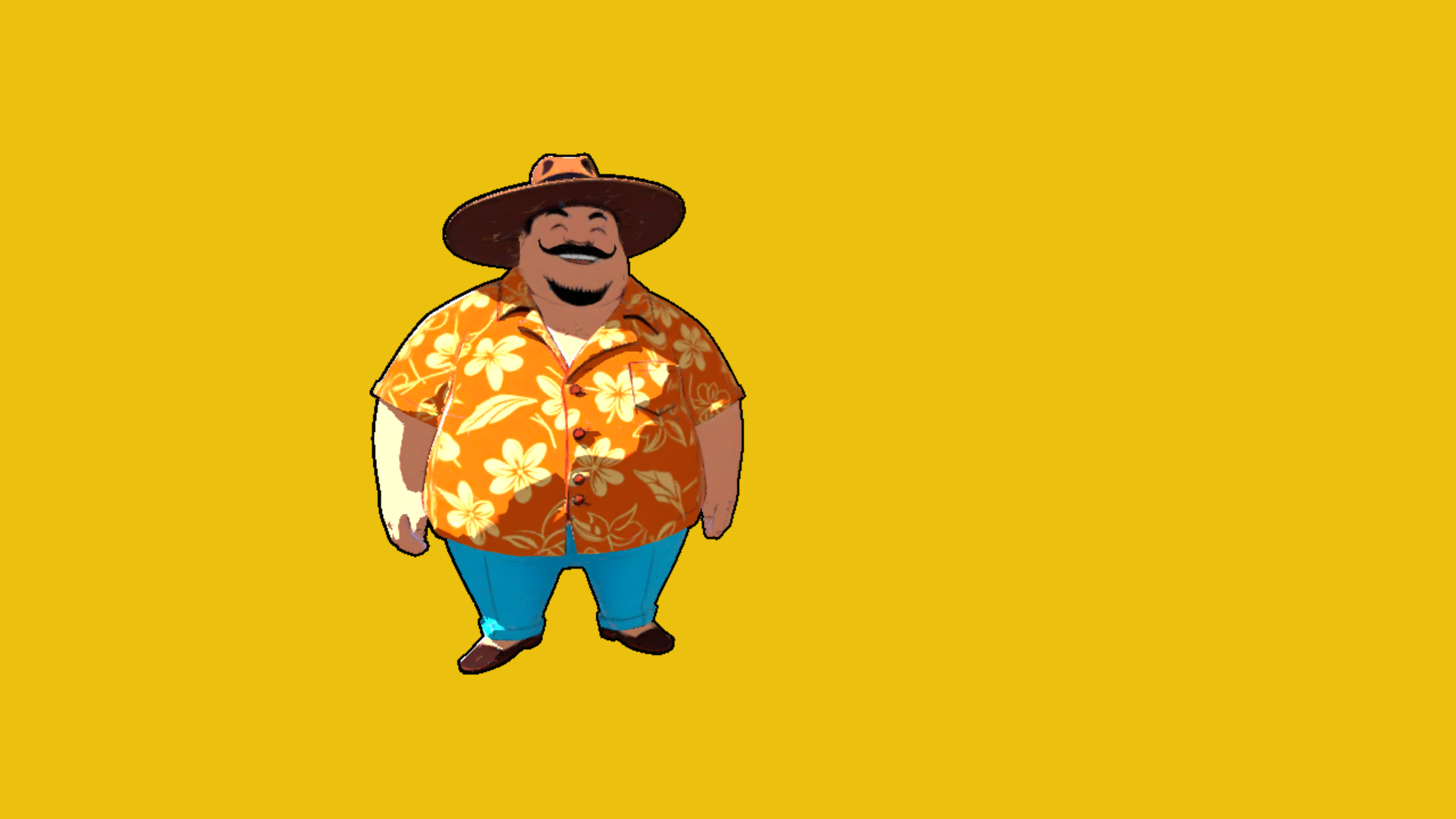 You can click on Big Guy to interact with him. Click parts of his body with the cursor and watch him spout different lines. Cel-shaded like a character out of Borderlands.